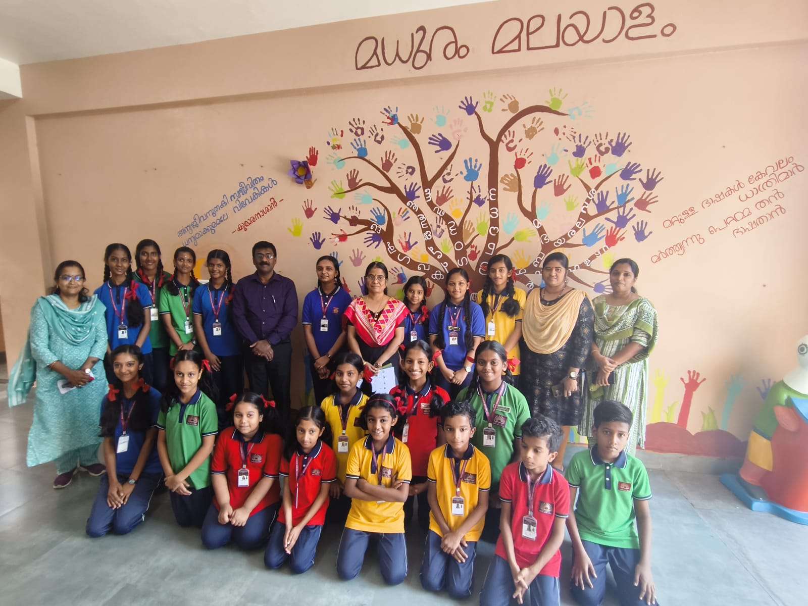 പ്രിൻസിപ്പൽ കുമാരമോഹൻ. ജി. യുടെ ആശയമാണ് ഇങ്ങനെഒരു അക്ഷരമരം ചുവരിൽ നിറയാൻ സാഹചര്യമൊരുക്കിയത്. മലയാള ഭാഷയോടുള്ള സ്നേഹവും വായനാശീലവും വളർത്തുക എന്ന ലക്ഷ്യത്തോടെ നടപ്പാക്കിയ പരിപാടി വലിയപങ്കാളിത്തംകൊണ്ട് ശ്രദ്ധേയമായി. അക്ഷര മരത്തിൽ കരതലം പതിക്കുന്ന ചടങ്ങ് വിദ്യാർത്ഥി കൾക്കും അധ്യാപകർക്കും പുതിയ അനുഭവമായി.ചടങ്ങ്പ്രിൻസിപ്പൽകുമാര മോഹൻ. ജി. ഉദ്ഘാടനം ചെയ്തു. പ്രൈമറി വിഭാഗം ഹെഡ് മിസ്ട്രസ് ബീന ബാലകൃഷ്ണൻ, മലയാള മിഷൻ സ്കൂൾ കോർഡിനേറ്റർ ലതിക റാണി, മലയാളം അധ്യാപിക സൗമ്യ.എസ്, സ്കൂൾ കൗൺസിലർ ദേവിക മോഹൻ എന്നിവർ സംസാരിച്ചു.