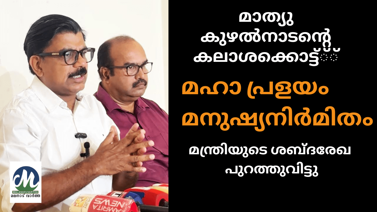 മാത്യുടി. തോമസിനെ മാറ്റി 2018 – 20 കാലത്ത് കെ. കൃഷ്ണൻകുട്ടി ജലസേചന മന്ത്രിസ്ഥാനം വഹിച്ചിരുന്നു. കരിമണൽ ലോബിക്ക് വേണ്ടിയാണ് കേരളത്തിൽ പ്രളയം ഉണ്ടാക്കിയതെന്നും കേരളത്തെ തകർത്ത പ്രളയം മനുഷ്യനിർമ്മിതമാണെന്നും മാത്യു കുഴൽനാടൻ ആരോപിച്ചു. പഴയ ശബ്ദ രേഖയാണ് പുറത്തുവന്നിരിക്കുന്നത്. കലാശക്കൊട്ട് ദിനത്തിൽ മാത്യുകുഴൽനാടൻ സർക്കാരിനെതിരെ പൊട്ടിച്ച് ബോം വലിയ ചർച്ചയായി മാറിയിട്ടുണ്ട്്.